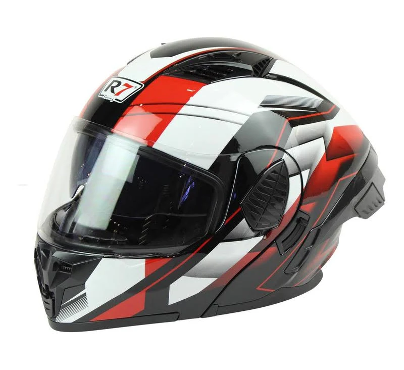 CASCO ABATIBLE R7 RACING SHELL DOBLE MICA DOT XL ROJ/BCO de R7 — Disponible en Moto Isla, Ciudad del Carmen.