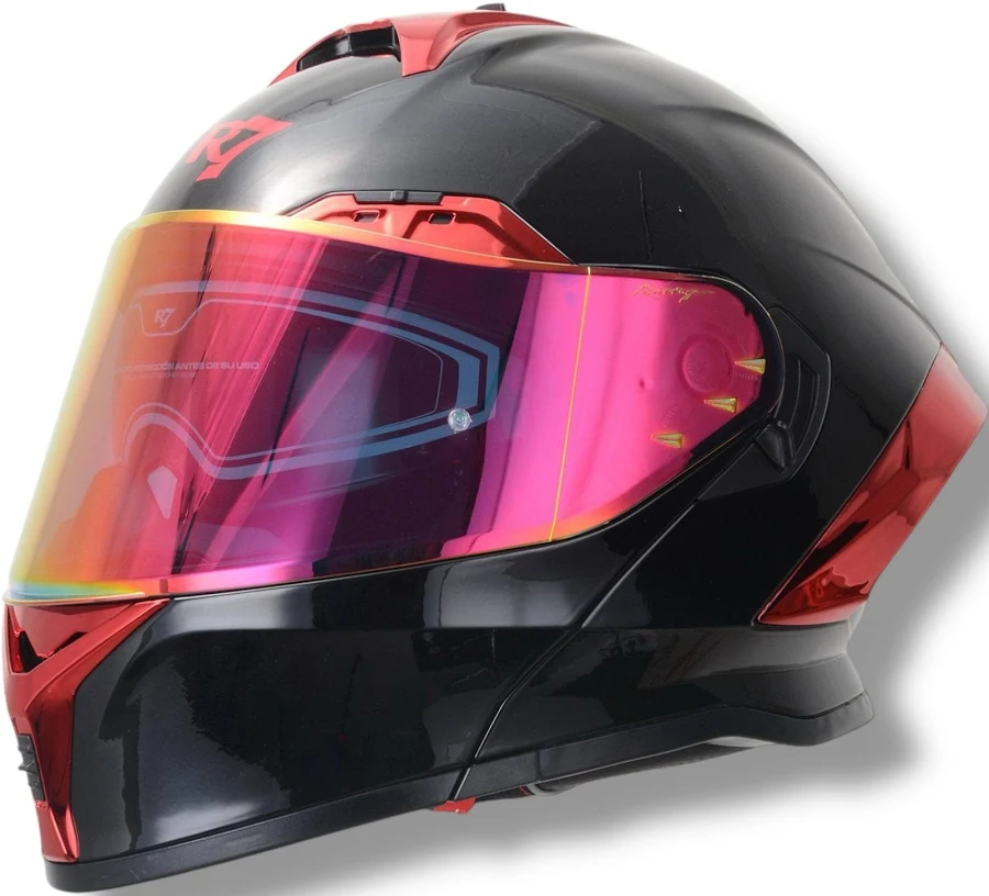 CASCO ABATIBLE R7 RACING NOVA DOBLE MICA DOT XL NEGRO MICA ROJA de R7 — Disponible en Moto Isla, Ciudad del Carmen.