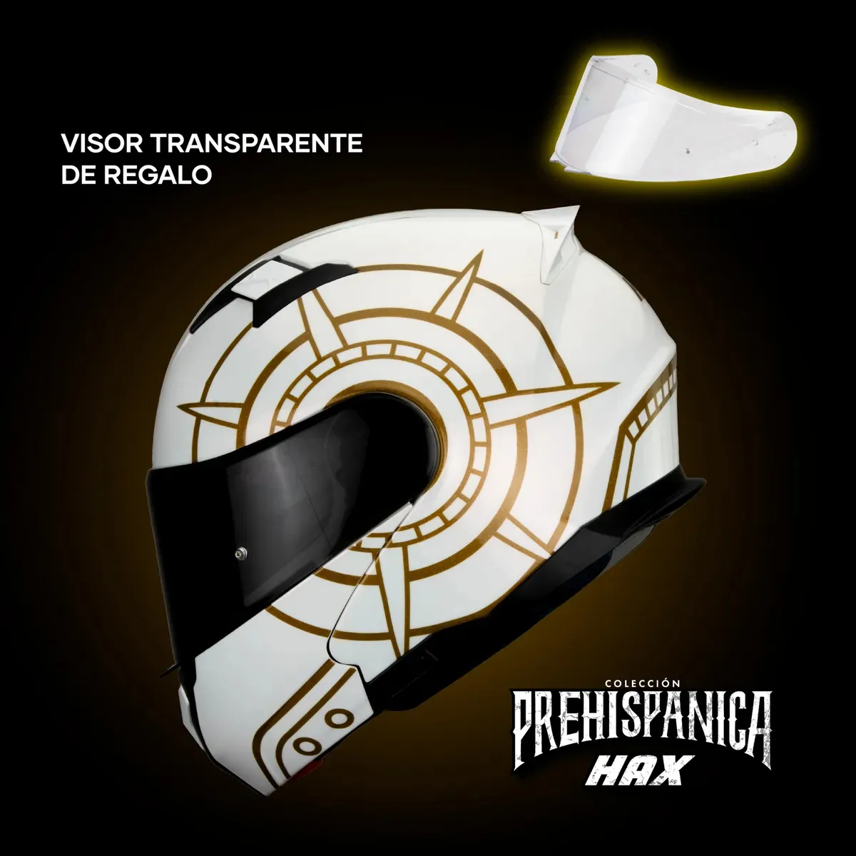 HAX CASCO AMATISTA TONATIUH BLANCO / DORADO BRILLO XL de HAX — Disponible en Moto Isla, Ciudad del Carmen.